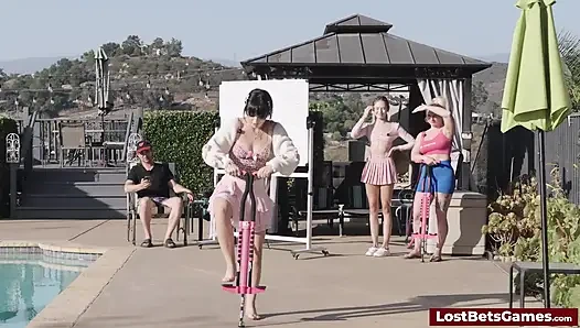 Kızlar kanepede striptiz kaya kağıt makaslama oyunu